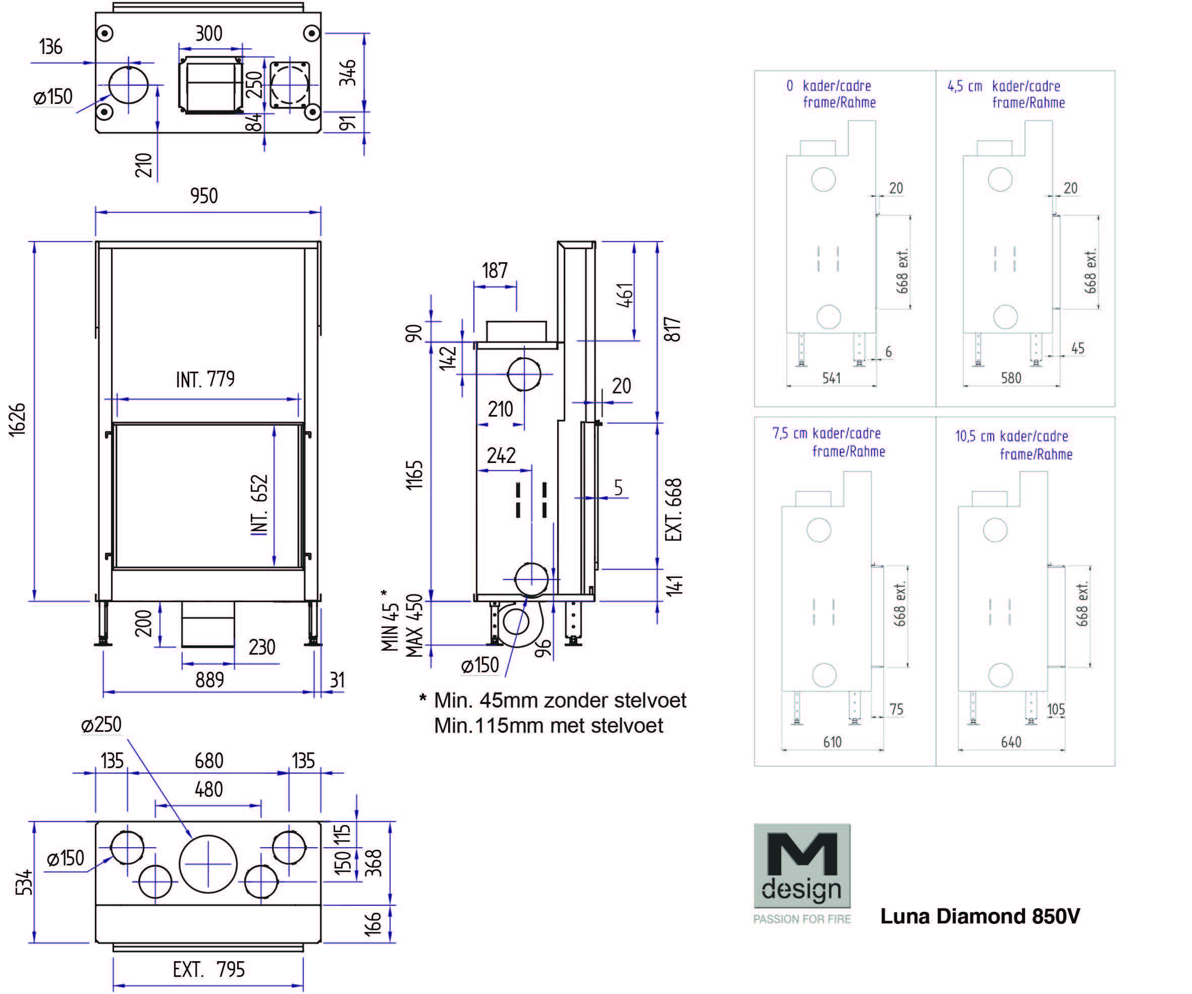 M-Design Luna 850 V Diamond Plus — это широкоформатная вертикальная дровяная топка, представляющая собой идеальное сочетание флагманского дизайна и интеллектуальных технологий. Благодаря увеличенной ширине (850 мм) и внушительной высоте стекла, этот камин создает мощный визуальный эффект «огненной стены», становясь главным архитектурным объектом в интерьере.