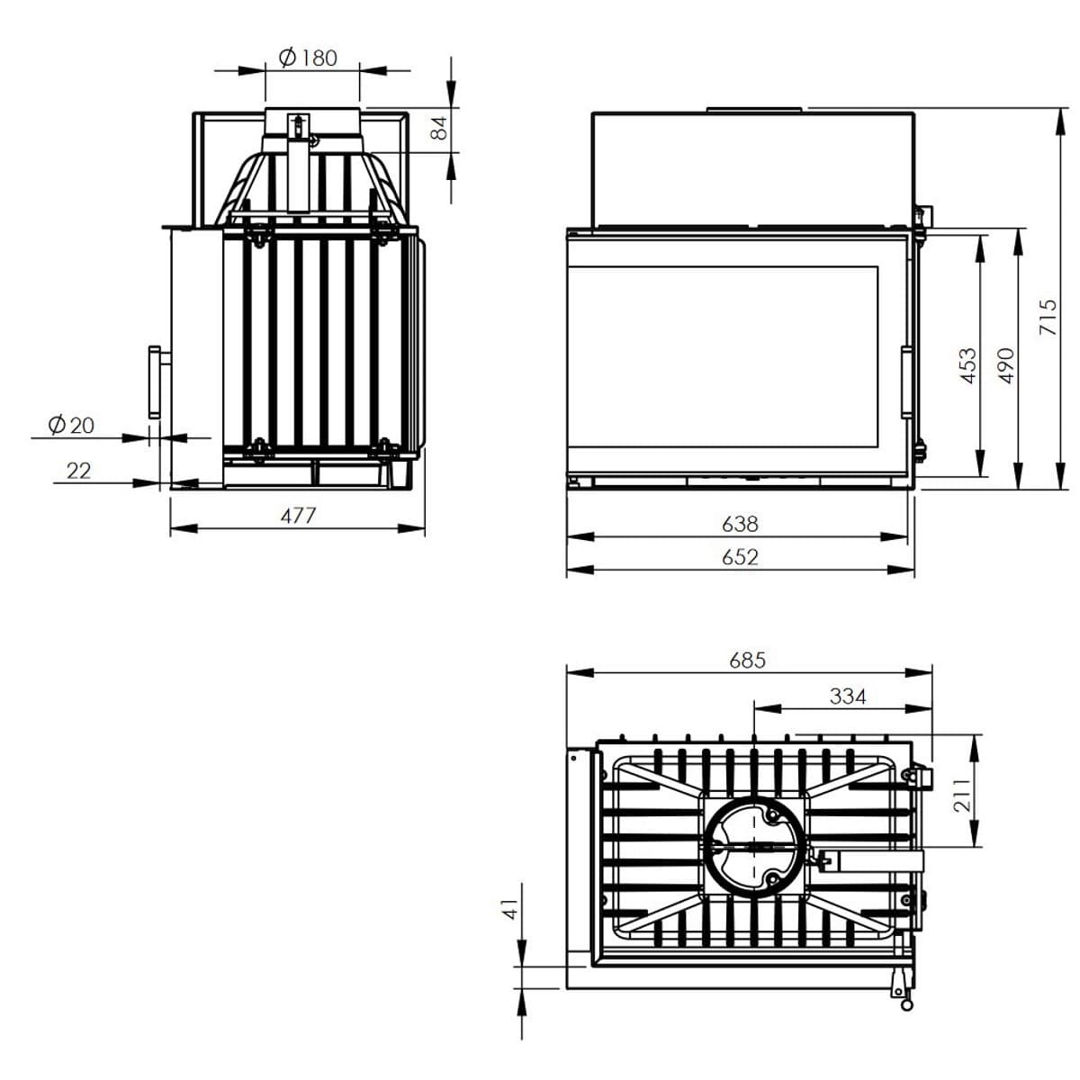 Топка Torn Right укомплектована шибером для лучшей регулировки процесса горения, а также для предотвращения выхода тепла в дымоход.Есть возможность подключения адаптера подвода внешнего воздуха.Тыльная сторона топки Torn Right оснащена двойной чугунной стенкой. Задняя стенка у каминных топок подвержена максимальной термической нагрузке. Дополнительная сменная внутренняя чугунная пластина защищает основной корпус топки от разрушения при чрезмерных нагрузках.
