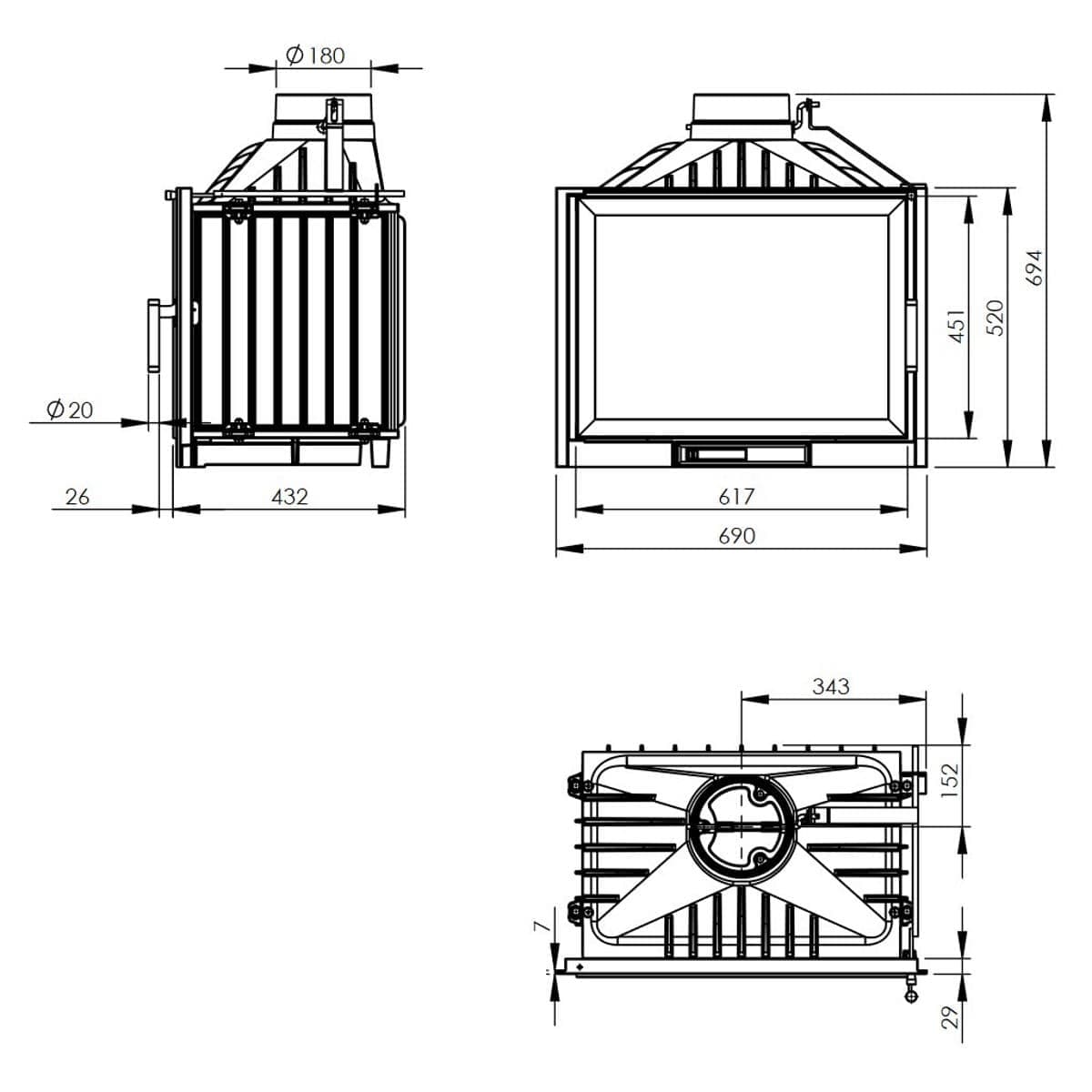 | Диаметр дымохода (мм) | 180 |