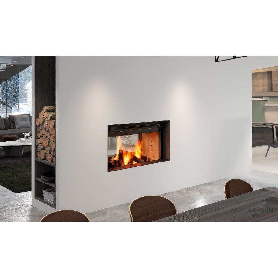 Топка выполнена из прочной стали, оснащена системой вторичного дожига и функцией «чистое стекло», что гарантирует экономичный расход топлива и минимальное загрязнение. Гильотинный механизм дверцы обеспечивает удобство эксплуатации, а жаропрочная футеровка внутри корпуса повышает теплоаккумуляцию и долговечность. Все элементы конструкции разработаны с учётом современных требований к безопасности и комфорту.