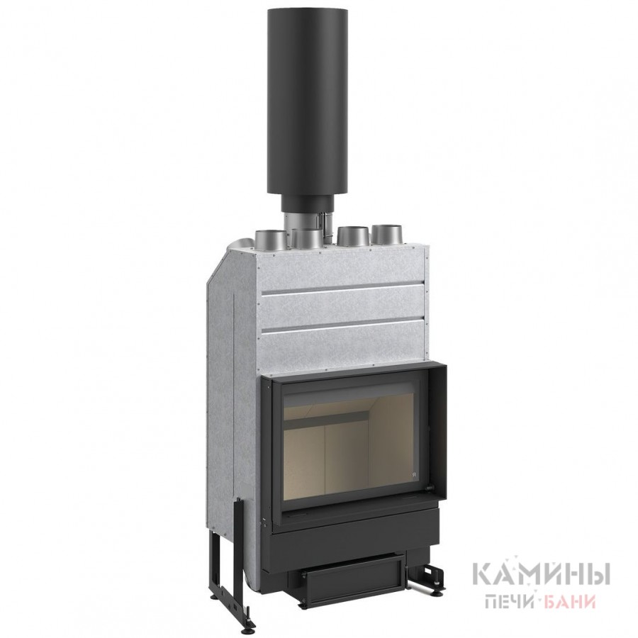 Корпус топки выполнен из жаропрочной стали, внутренняя футеровка — из шамота, а дверца оснащена термостойким керамическим стеклом. Такое сочетание материалов обеспечивает долговечность, равномерное распределение тепла и надёжную защиту конструкции от перегрева. Шамот сохраняет тепло даже после затухания огня, а большое стекло позволяет наслаждаться видом живого пламени, создавая особую атмосферу уюта.