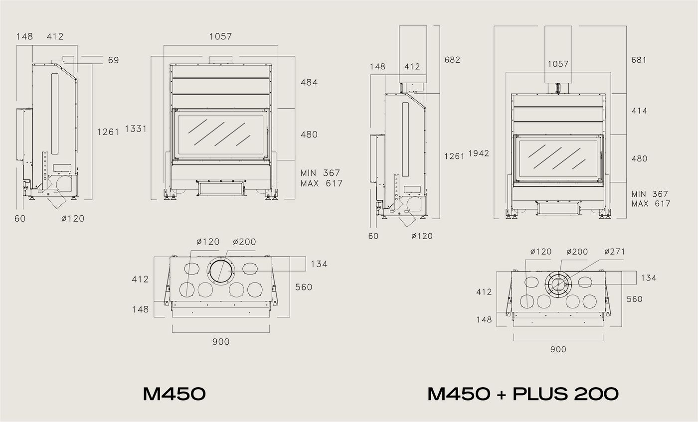 Rocal M450 — это современная каминная топка из серии M2120, сочетающая в себе высокую мощность, стильный дизайн и экологичность. Благодаря номинальной мощности 15 кВт и КПД 78%, модель способна эффективно обогреть до 125 м² жилой площади, обеспечивая уют и тепло даже в просторных помещениях. Топка соответствует европейскому стандарту Ecodesign 2022, имеет класс энергоэффективности A и сертификацию UNE EN-13229, что гарантирует её безопасность и экологичность.