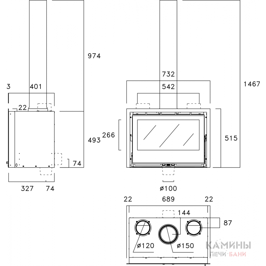 | Высота | 515 мм- без трубы1467 мм - с трубой |