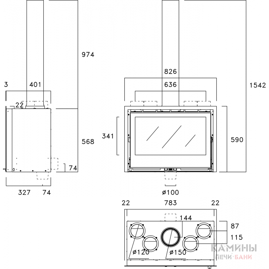 | Высота | 590 мм- без трубы1542 мм - с трубой |