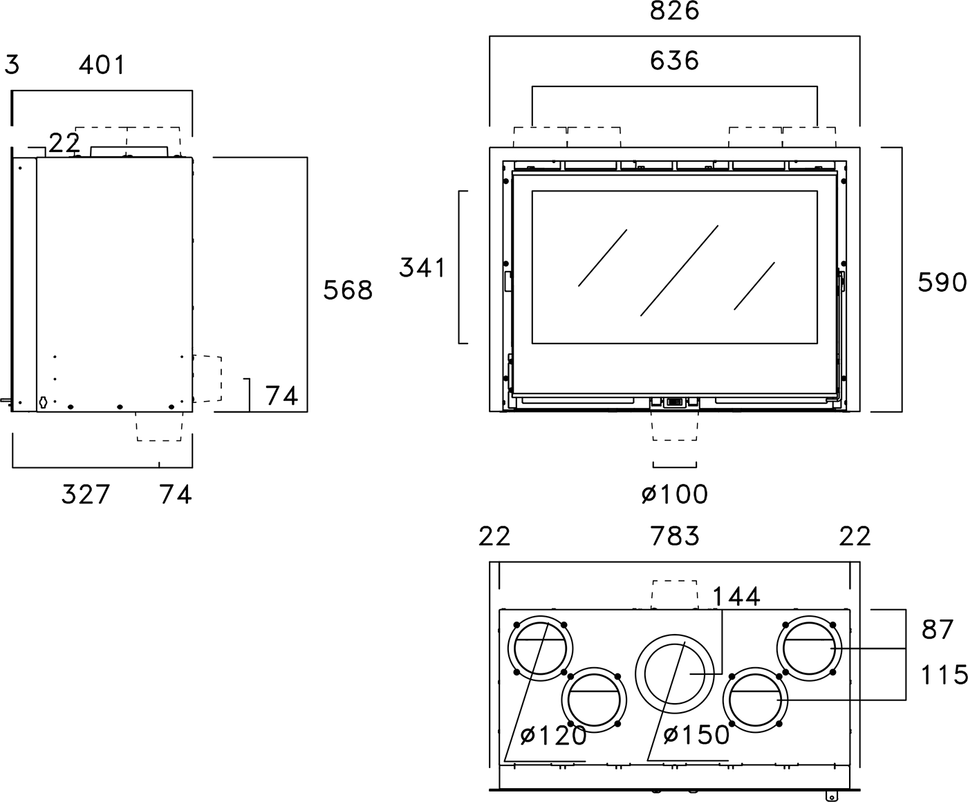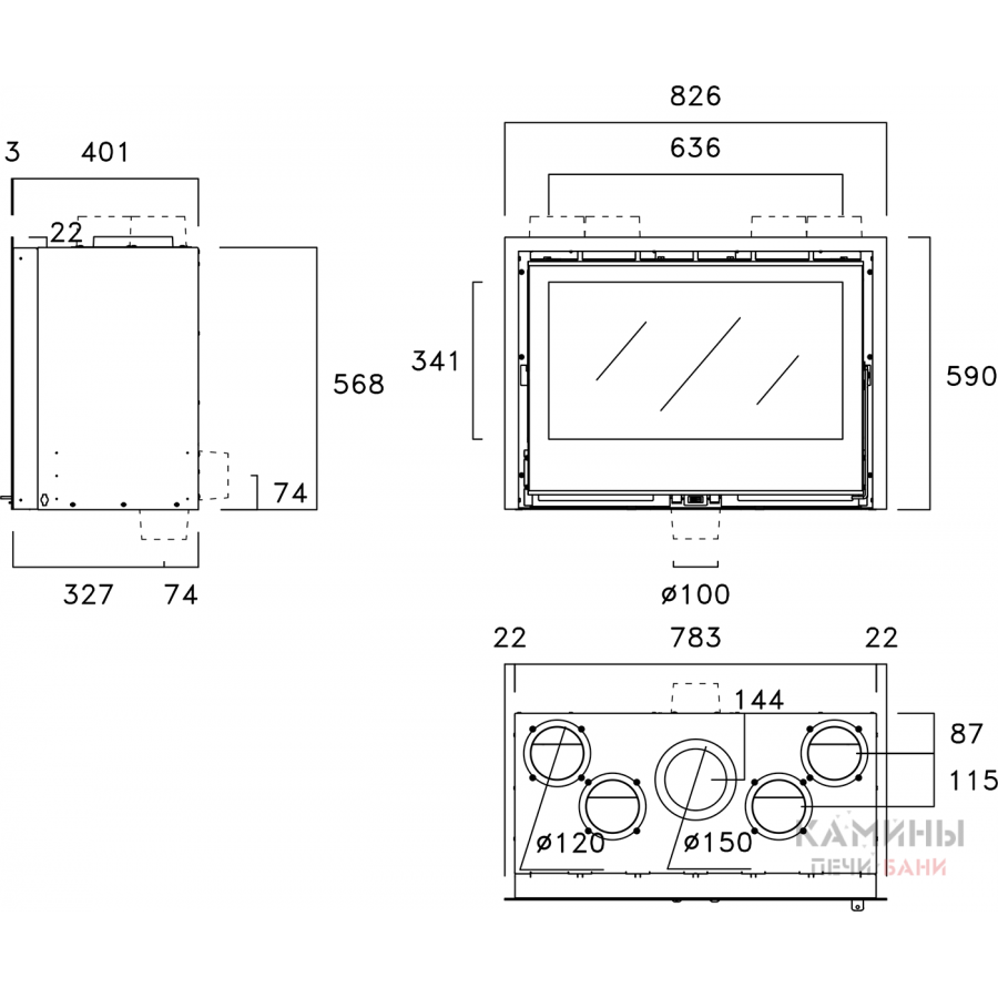 | Диаметр дымохода | 150 мм |