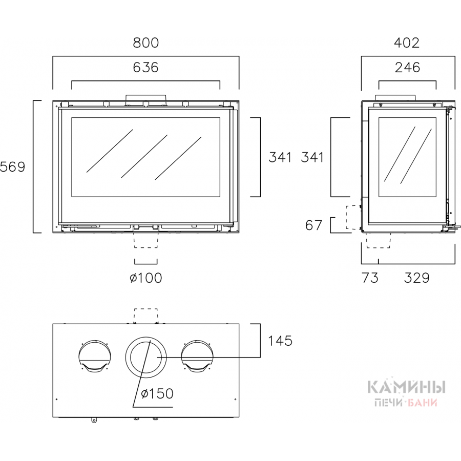 | Диаметр дымохода | 150 мм |