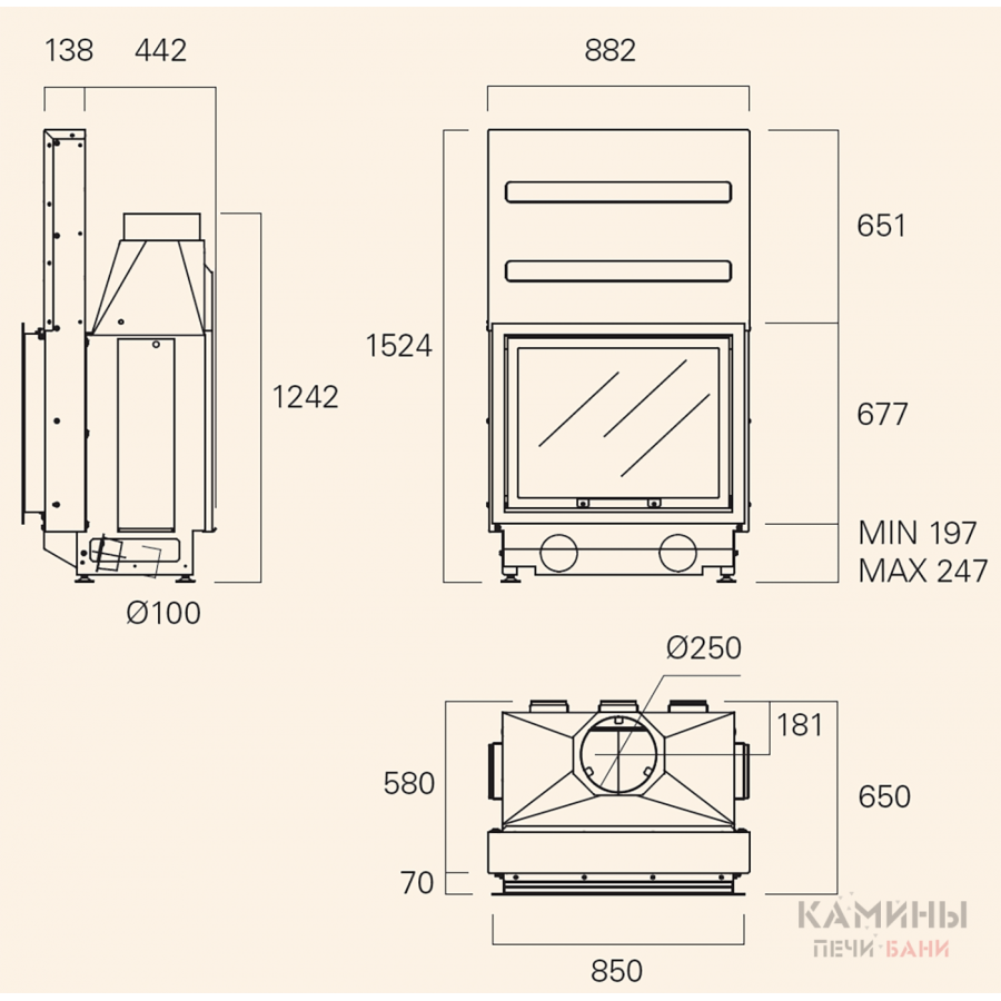 - Внутренняя часть из вермикулита с регулировкой первичного и вторичного воздуха.