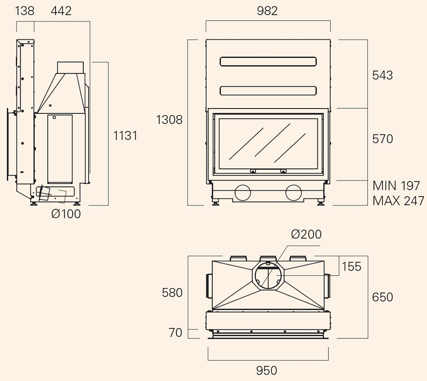 | Диаметр дымохода | 200 мм |