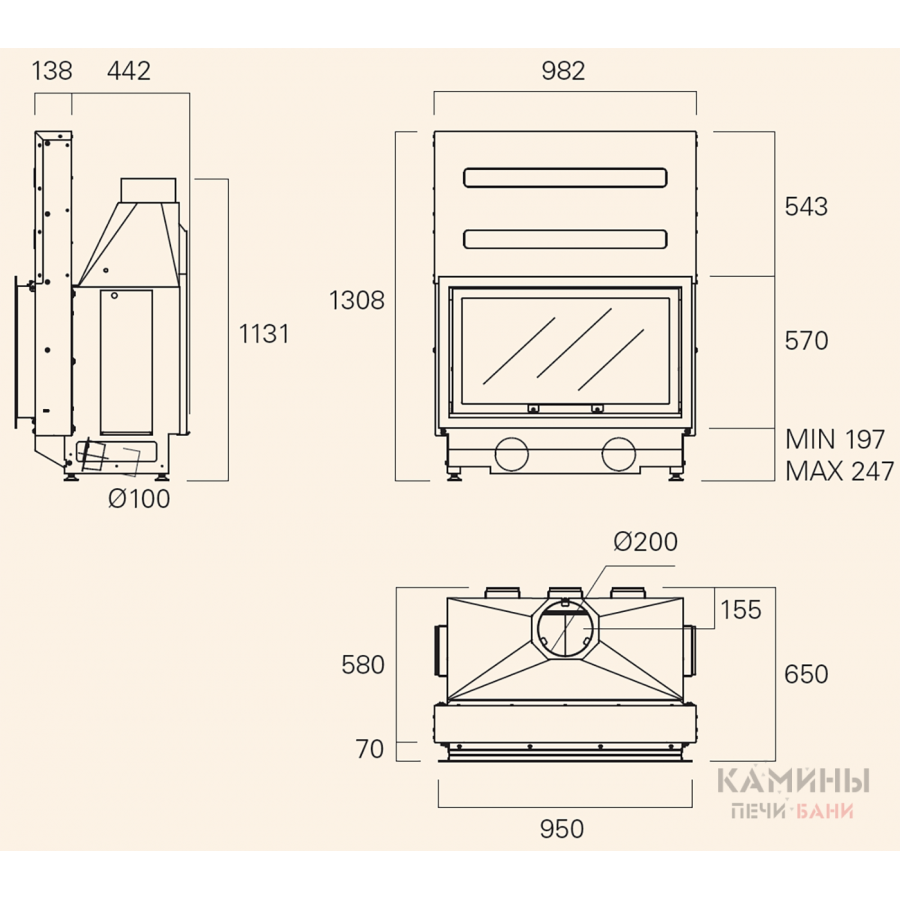 | Диаметр дымохода | 200 мм |