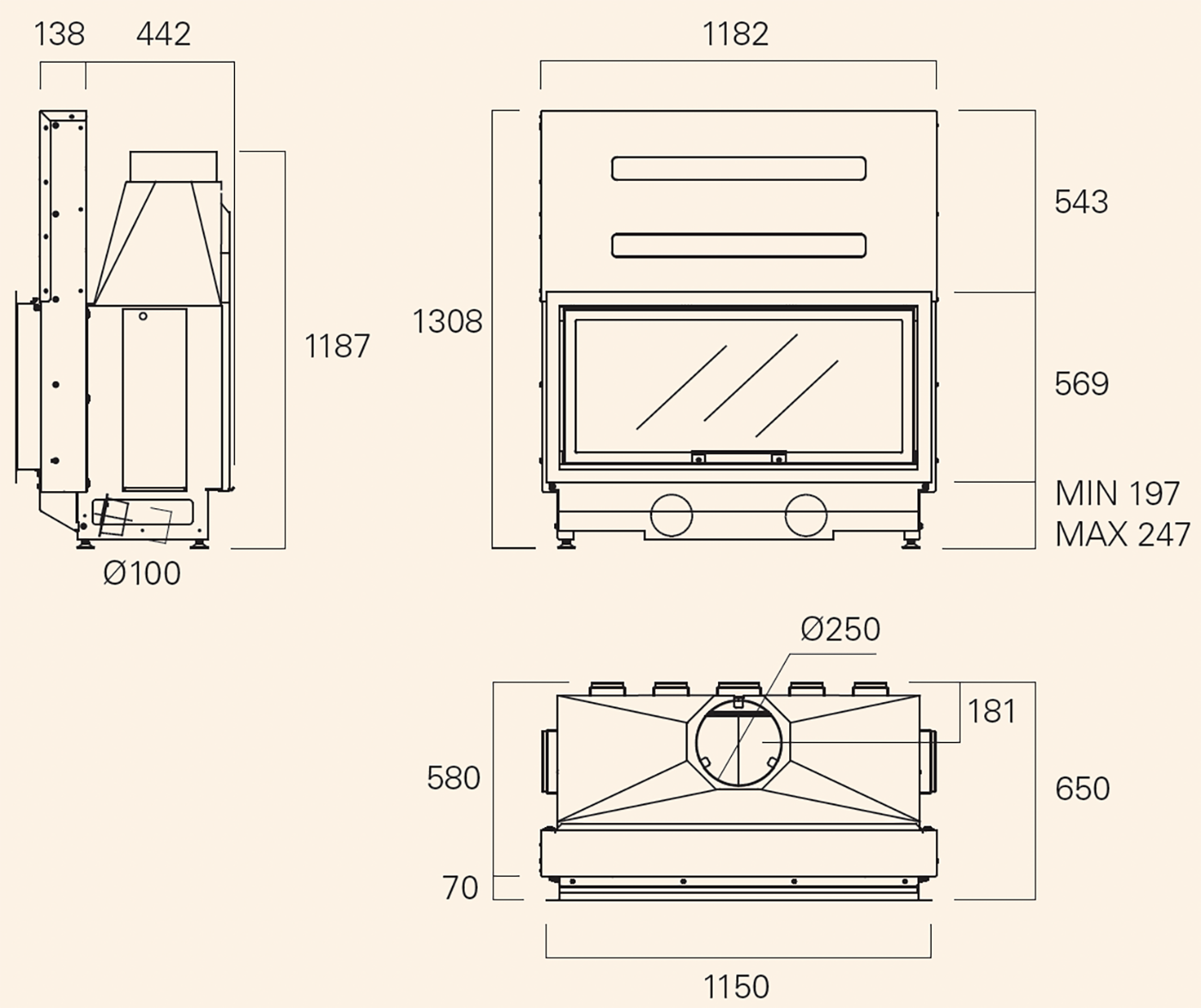 - Внутренняя часть из вермикулита с регулировкой первичного и вторичного воздуха.