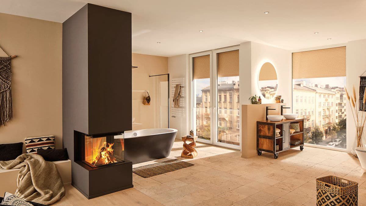 Огонь эксклюзивной каминной топки окружен стеклом только с трех сторон.Это дает огню возможность максимально раскрыть свое очарование. Крометого, вы получите удовольствие от постановки огня в центре комнаты.Специальная опция выделения: окно S-ESAM, которое можно открытьэлектрически с помощью смартфона.