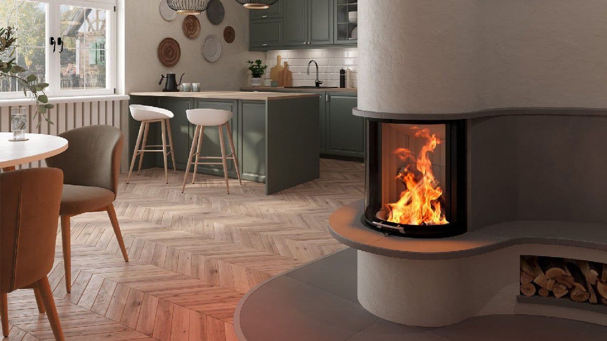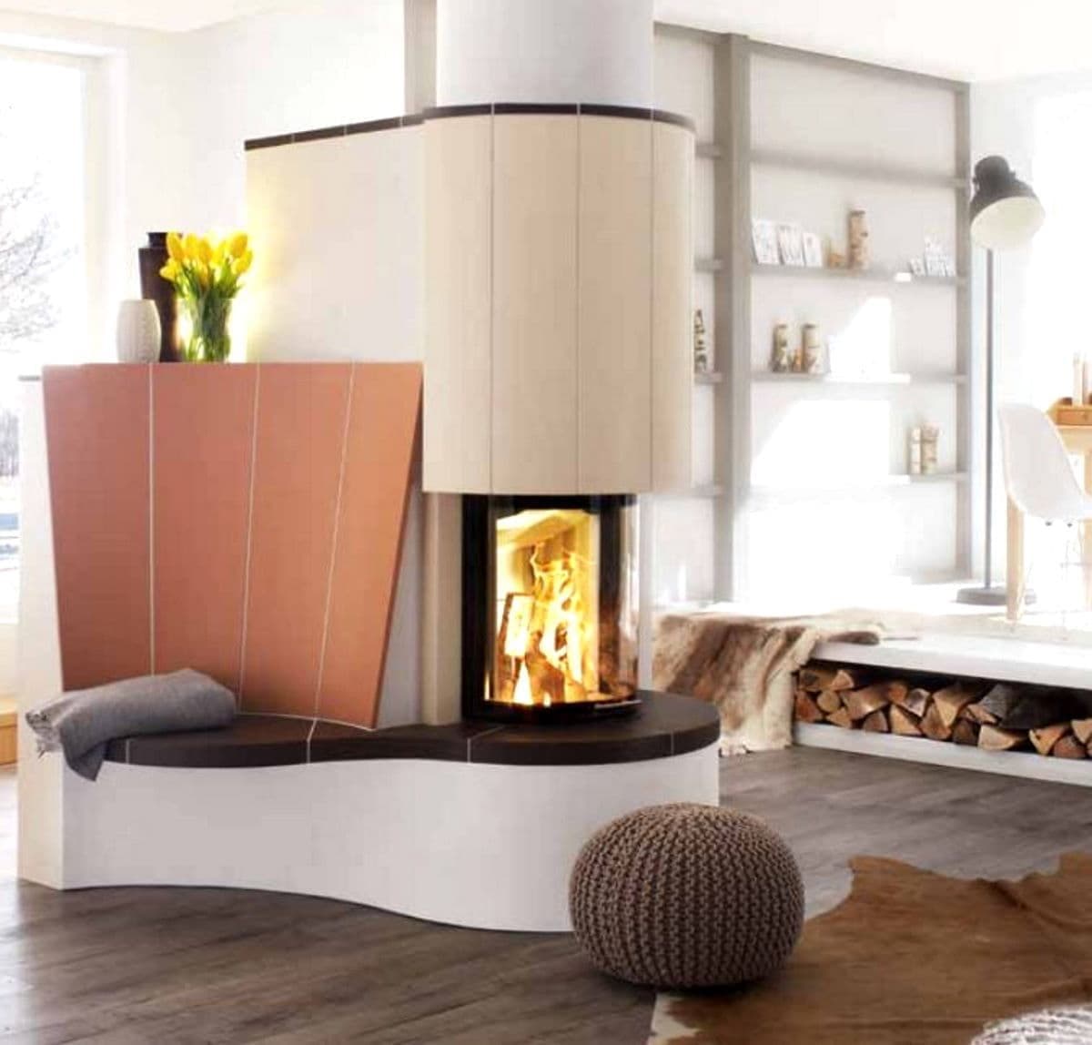 Он не обязательно должен быть угловым. С круглой каминной топкой SpeedyPh плавные формы могут быть воплощены в дизайне камина и могут бытьсозданы классические камины. Практичная подъемная дверь - очень удобноерешение для добавления большего количества древесины, и принеобходимости может управляться даже электрически (S-ESAM).