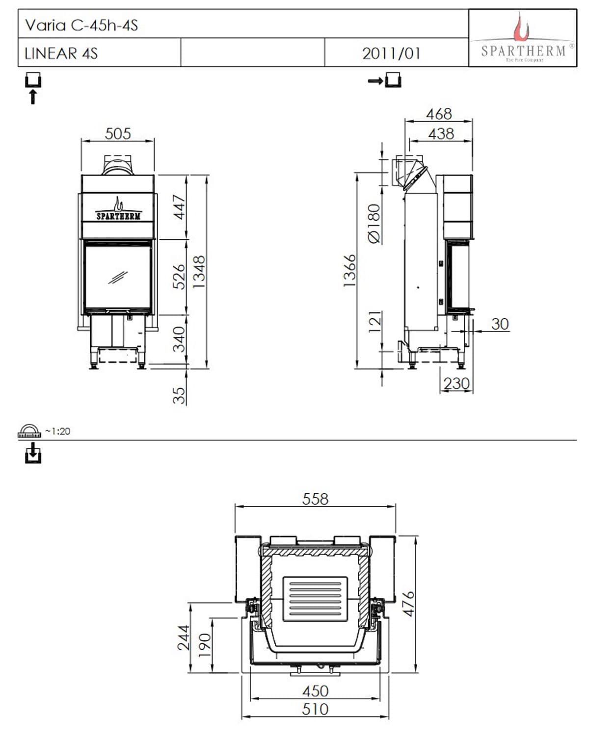 Каминная топка Spartherm Varia C-45h с трехсторонним стеклом обладает не только поразительным дизайном, но также соответствует и распространенному представлению о немецком качестве. Всё в этой топке – от технической до эстетической стороны – соответствует требованиям к продукции премиум-класса. Камин оснащен бесшумным подъемным механизмом дверцы, обеспечивающим полную герметичность топочной камеры, а также системой "чистое стекло" и полностью регулируемой системой вторичного дожига, позволяющей достигать высоких показателей теплоотдачи.