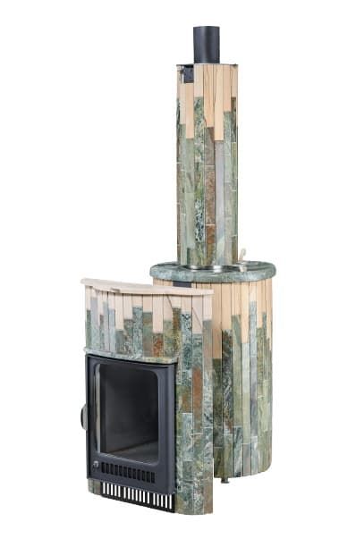 Печь для бани от производителя VÖHRINGER серии Малютка ПФ 18 Жадеит+"Окаменевшее дерево". Она рассчитана для установки в парной объёмом до 18 м3.