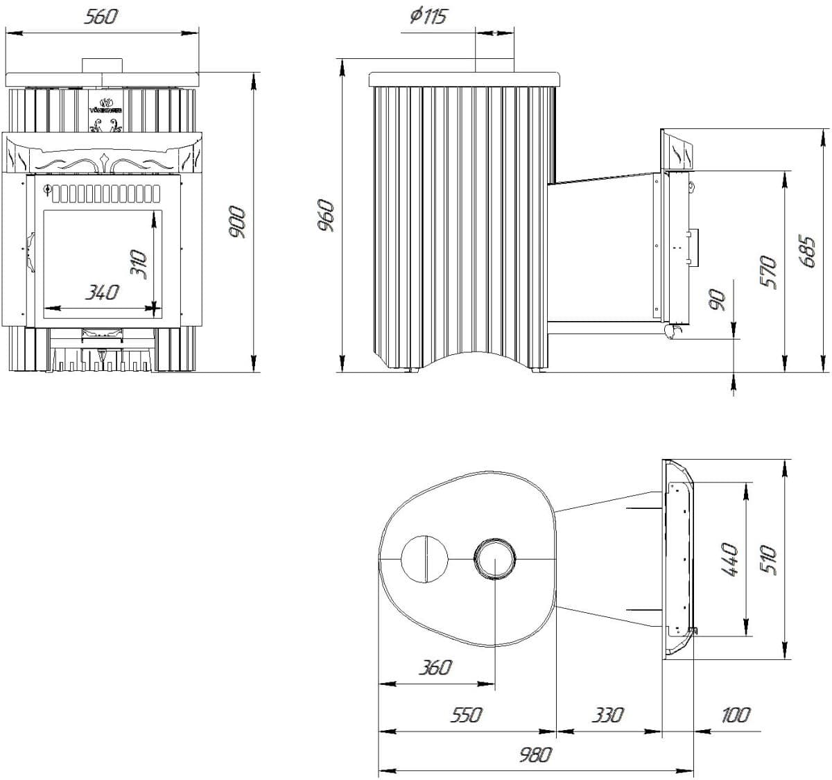 | Размер топки ГxШxВ (мм) | 300x260x340 |