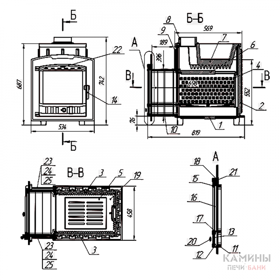 Пирамидальные шипы, расположенные внутри топки на боковых стенках способствуют эффективному горению дров и увеличивают площадь теплопередачи на 80%, что позволяет печи более динамично войти в режим.