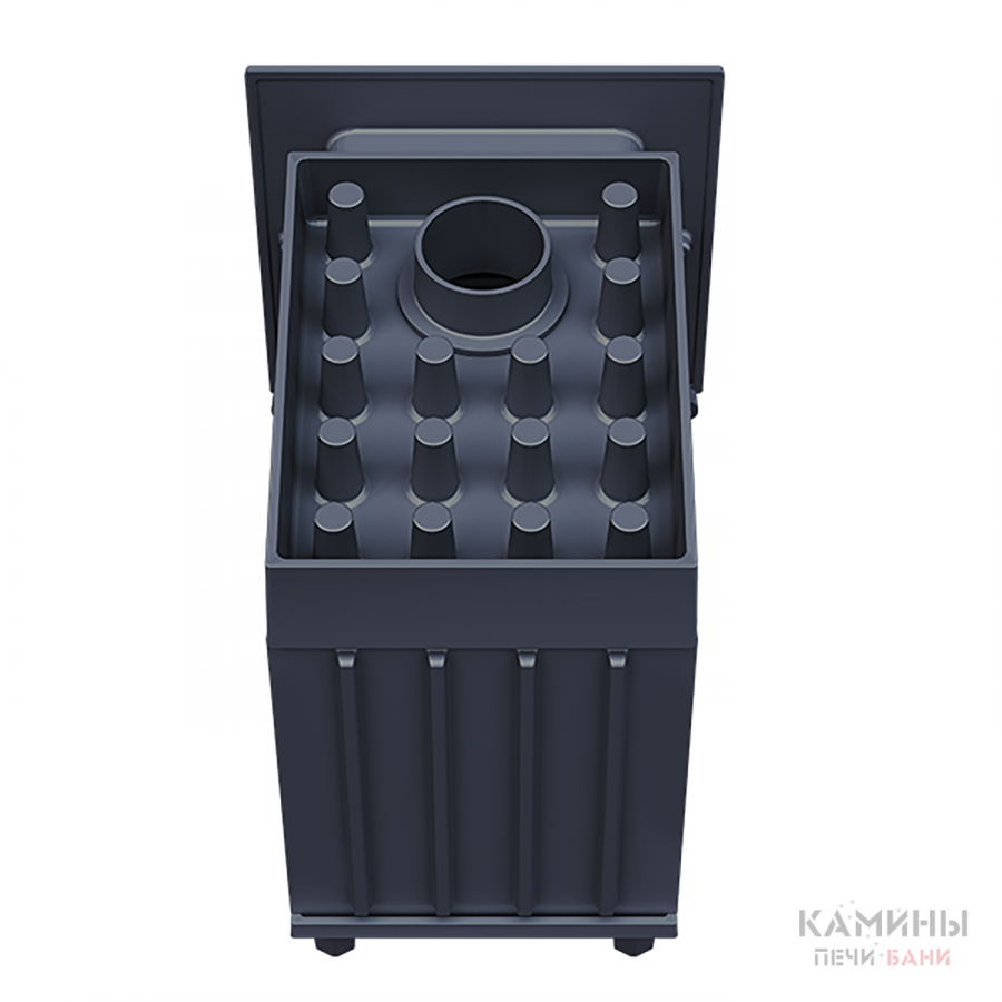 Не имеющая аналогов каменка толщиной 45 мм обеспечивает непревзойденную надежность и высокую теплоемкость, 120 теплосъемных шипов по всей её поверхности, позволяют каменке нагреться за 60 минут до 700 градусов и долгое время удерживать тепло.