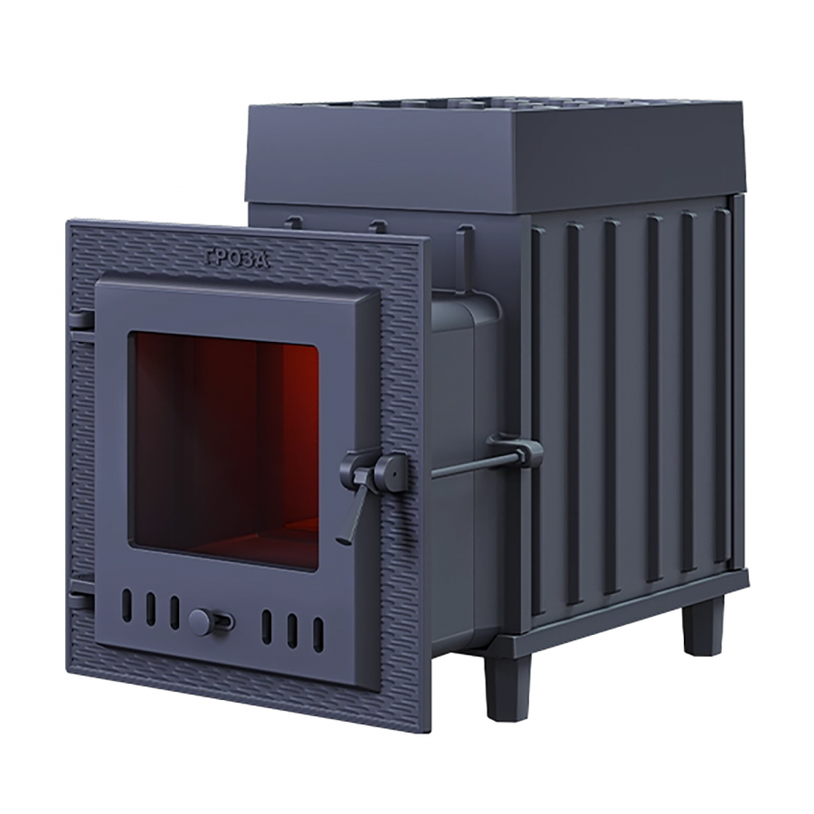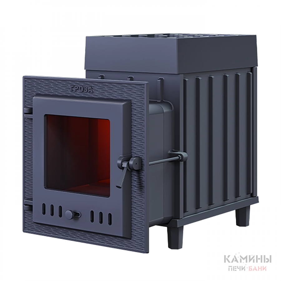 Печь Гроза 18 (М) из чугуна создаст подходящий климат для вашей бани. Чугунные банные печи ТМ «Гроза» — это современные печи, рассчитанные на малые и средние размеры парных. Печь имеет прочную сборную конструкцию, без резьбовых и сварных соединений, детали выполнены из легированного чугуна. Топка печей «Гроза» состоит из двух камер, разделенных пламегасителем. Радиаторные выступы каменки, направленные вглубь топки, увеличивают площадь контакта огня с каменкой и эффективность теплосъема. Для увеличения площади поверхности нагрева камней каменка снаружи оборудована чугунными шипами, направленными вверх. Между шипами укладываются банные камни или дополнительные чугунные заклады, такие как ядра и чугунные шишки. Сами чугунные шипы также являются частью заряда для лучшего испарения воды.