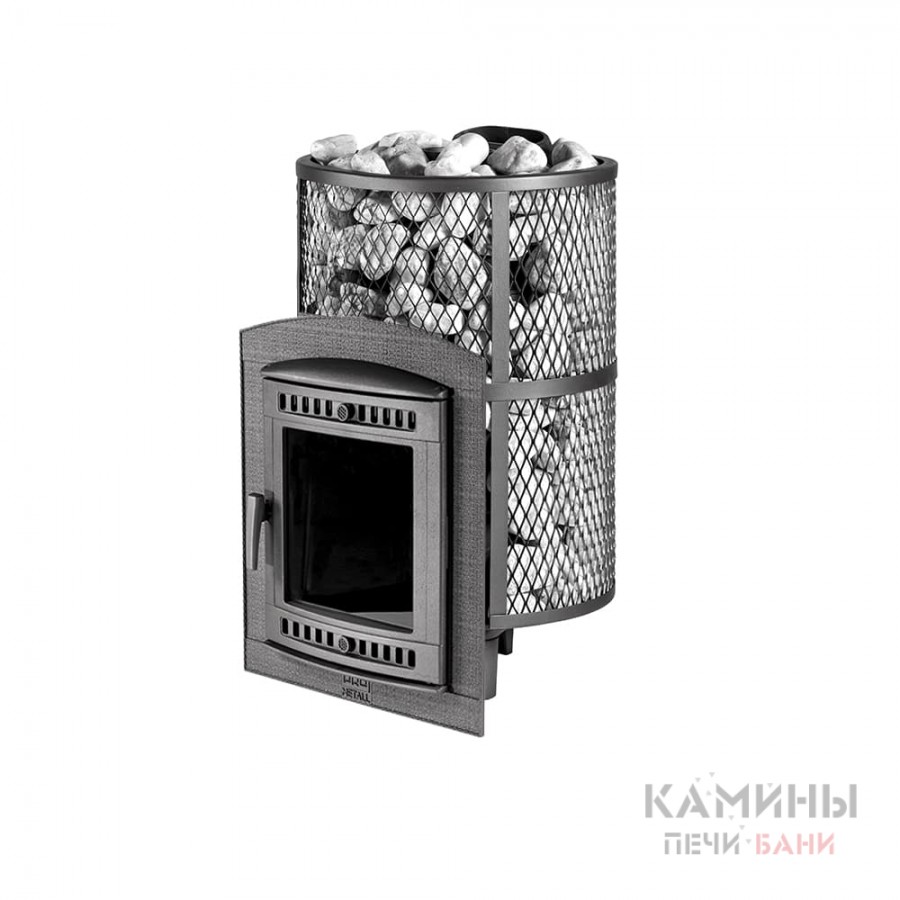 Кожух печи выполнен в виде сетки из стали и полностью заполняется природными камнями, обеспечивая высокую динамику нагрева парильного помещения.