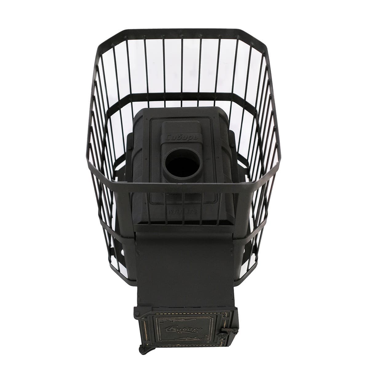 Печь представляет собой традиционную сборную чугунную конструкцию, состоящую из 3-х сегментов: нижней и верхней частей топочной камеры, а также дополнительным элементом с дымоотводящим патрубком. Толщина чугунных элементов составляет 6 мм, что существенно влияет на вес печи, который составляет 72 кг.Данный вид печи выпускается в модификации с выносным топочным каналом с чугунной топочной дверкой "Сибирь" - фирменным стилем завода "НМК".По периметру печи расположена сетчатая стальная конструкция, которая заполняется большим количеством камней, выполняющих функцию мощного аккумулятора и обладающей высокими теплоемкими свойствами. Масса камней, способных разместится в данной модификации печи составляет 180 кг, что создает неповторимую эстетику внутри бани и гармонизирует внутреннее пространство.