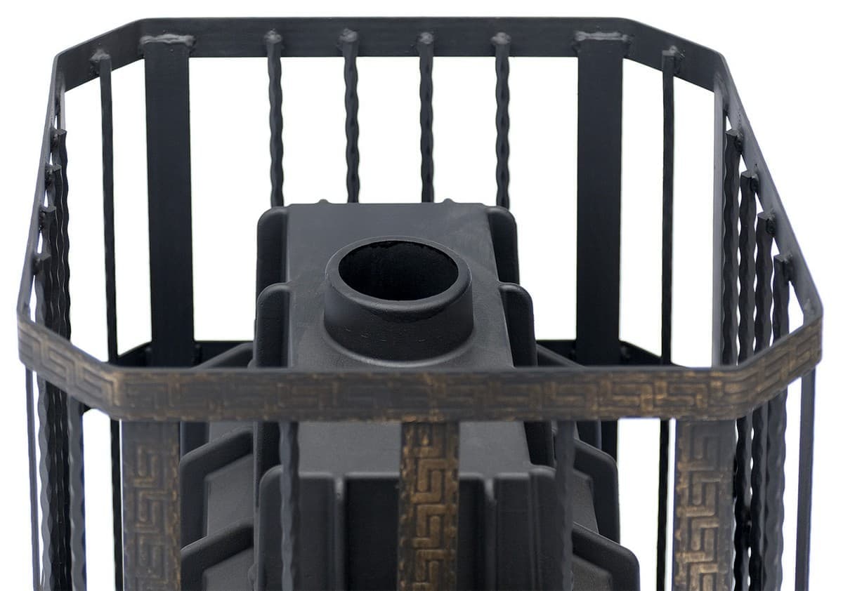 Топочная камера из чугуна представляет собой сборную конструкцию из трех элементов, соединенную между собой болтовым креплением и жаропрочным герметиком, обеспечивающим идеальное соприкосновение и полную герметичность. Печи рассчитаны на обогрев парильного и смежных помещений бани объемом от 20 до 32 м3.Данная печь является самой мощной в линейке чугунных банных печей "Сибирь".