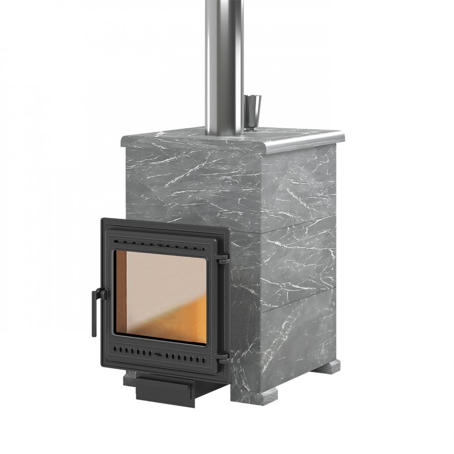 Комплект с чугунной банной печью «Легенда Русский пар 18 (240) Next» в облицовке из натурального камня Талькохлорит.