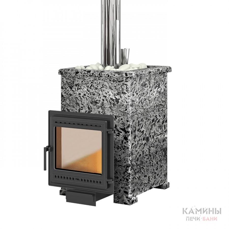 Комплект с чугунной банной печью Легенда Русский пар 18 (505) в облицовке из пироксенита.