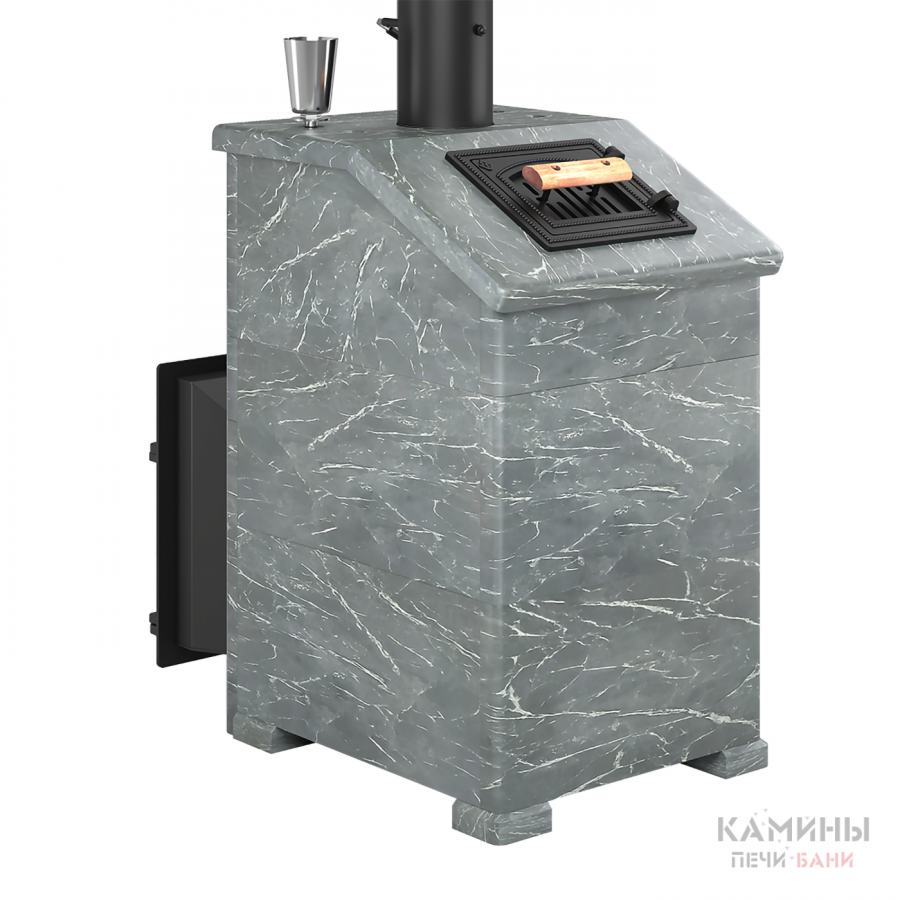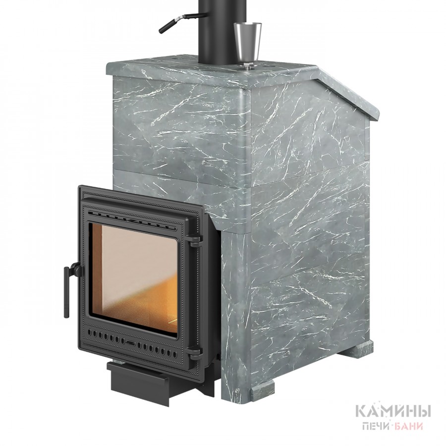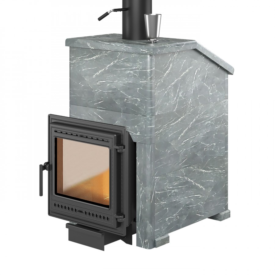 Комплект с чугунной банной печью "Легенда Ретро 505" в облицовке из натурального камня Талькохлорит.