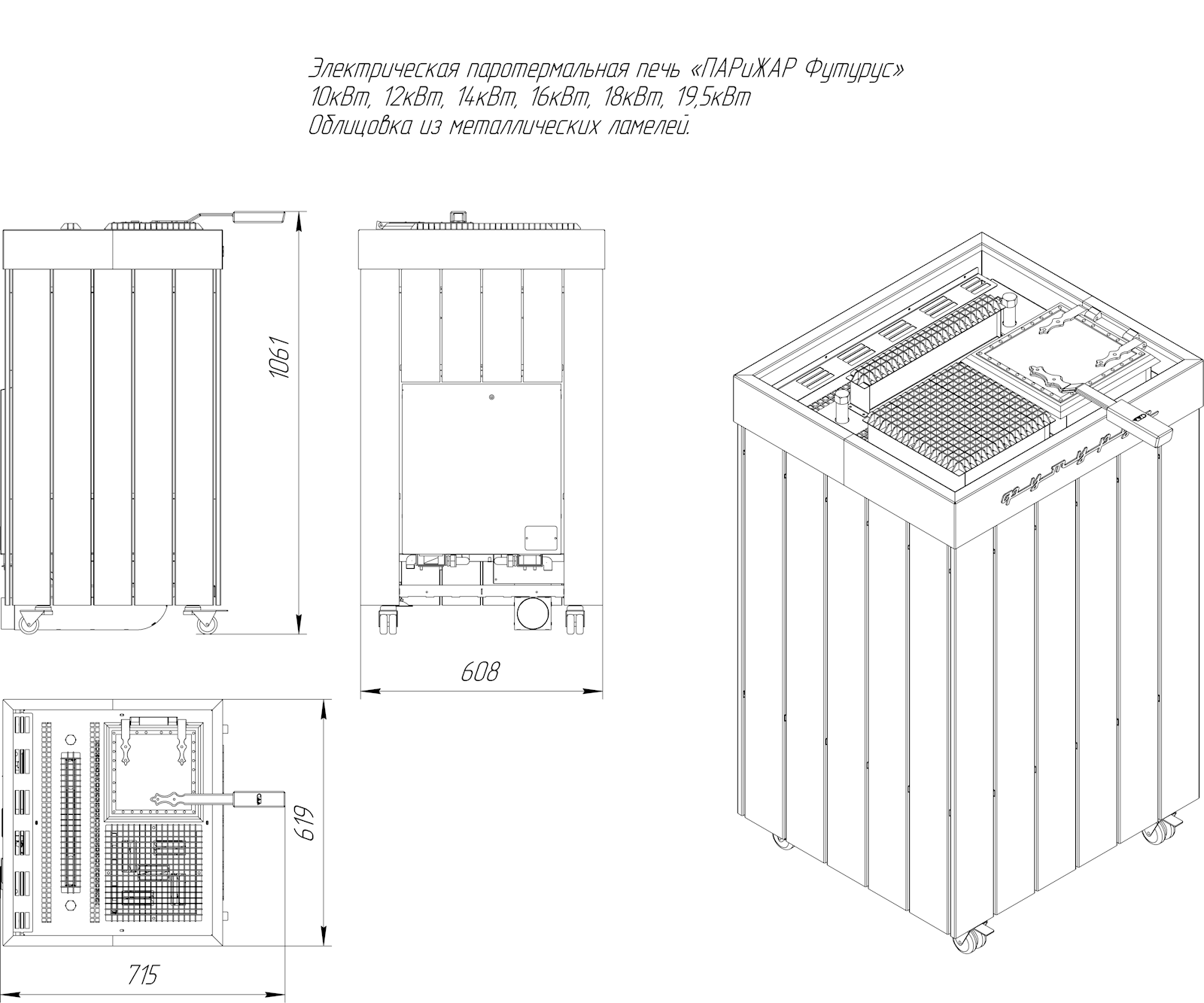 Электрическая паротермальная печь «ПАРиЖАР Футурус» 10 кВт (380 В) в металлической облицовке для сауны и бани