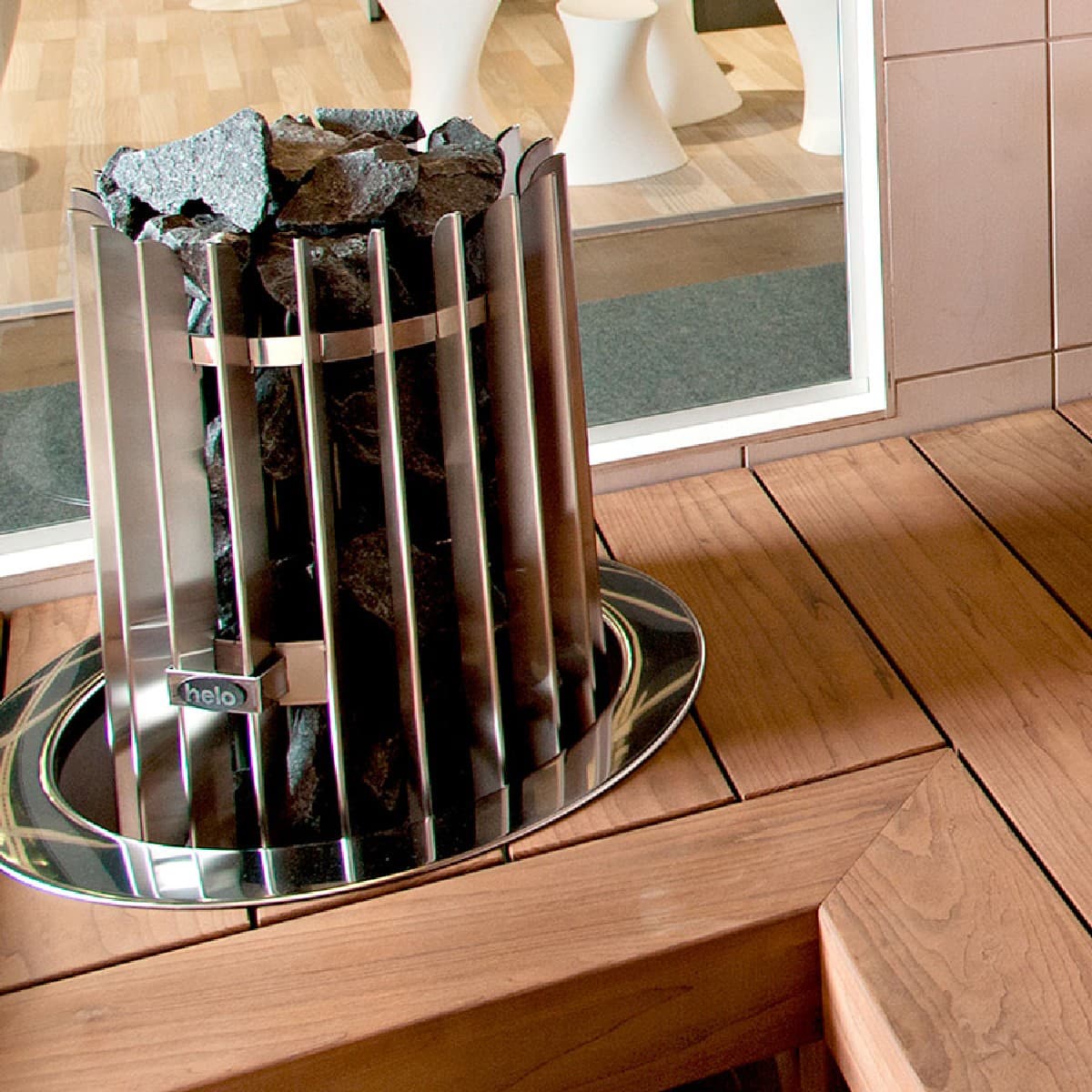 Helo Rocher — это 100 кг камней в стильном корпусе из матовойстали. Особенность нагревателя — полноразмерные тэны, которые протянутыпо всей высоте. Это гарантирует, что каждый камень в кладке будет быстрои эффективно нагрет. Rocher — это богатство возможностей по дизайну.Его можно установить в углу, встроить в полок у стены или сделатьцентральным элементом сауны.