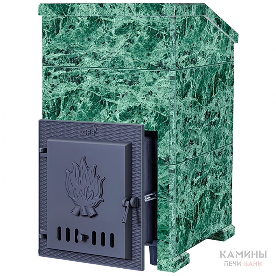 GFS Гефест ЗК 30 Президент 980/40 Змеевик - печь с усиленной каменкой большей массы, с единымуглублением внутрь топки для дополнительной укладки чугунного заряда.Теплосъемные шипы со стороны горения пламени в разы увеличиваютплощадь соприкосновения огня с каменкой и ускоряют передачу тепла, атакже способствуют лучшему дожигу, смешивая потоки пламени и воздуха, поступаемого из воздушника. Эти усовершенствования значительно повышаютмощность парообразования печи и выдают большее количество пара принепрерывной подаче воды. Каменка печей GFS Гефест-ЗК является незаливаемой.