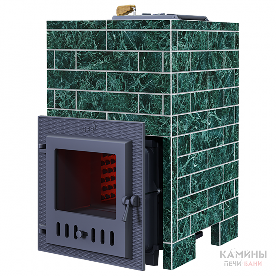 GFS Гефест ЗК 18 - печь с усиленной каменкой большей массы, с единымуглублением внутрь топки для дополнительной укладки чугунного заряда.Теплосъемные шипы со стороны горения пламени в разы увеличиваютплощадь соприкосновения огня с каменкой и ускоряют передачу тепла, атакже способствуют лучшему дожигу, смешивая потоки пламени и воздуха, поступаемого из воздушника. Эти усовершенствования значительно повышаютмощность парообразования печи и выдают большее количество пара принепрерывной подаче воды. Каменка печей GFS Гефест-ЗК является незаливаемой.