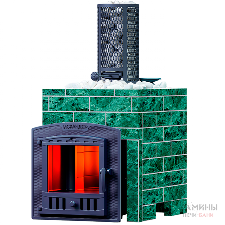 Печь Искандер получила от старших моделей парообразователь прямого нагрева - чугунную каменку имеющую существенную толщину и массу для аккумуляции тепла. Нагреваясь свыше 600С она эффективно нагревает дополнительный заряд, и при попадании воды даёт лёгкий мелкодисперсный пар. Расположенные снизу теплосъёмные шипы ускоряют нагрев парообразователя.