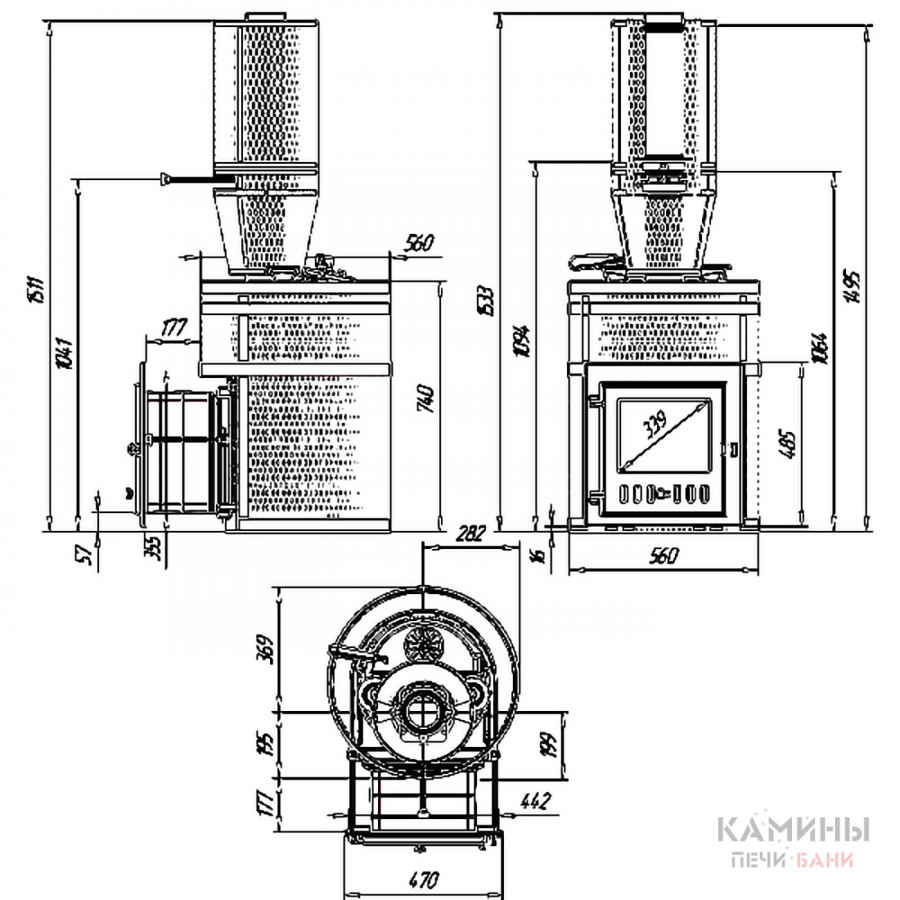 Печь полностью изготовлена из чугуна