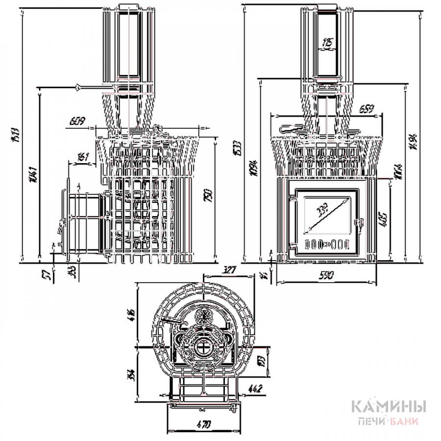Печь полностью изготовлена из чугуна