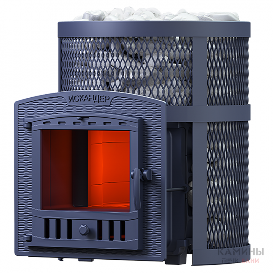 Чугунная банная печь с прямым нагревом парообразователя. Печь со стенками толщиной 14 мм. Быстро нагревает воздух в парной и производит качественный мелкодисперсный пар за счёт теплоёмкой каменки, оснащённой теплосъёмными шипами на нижней поверхности.