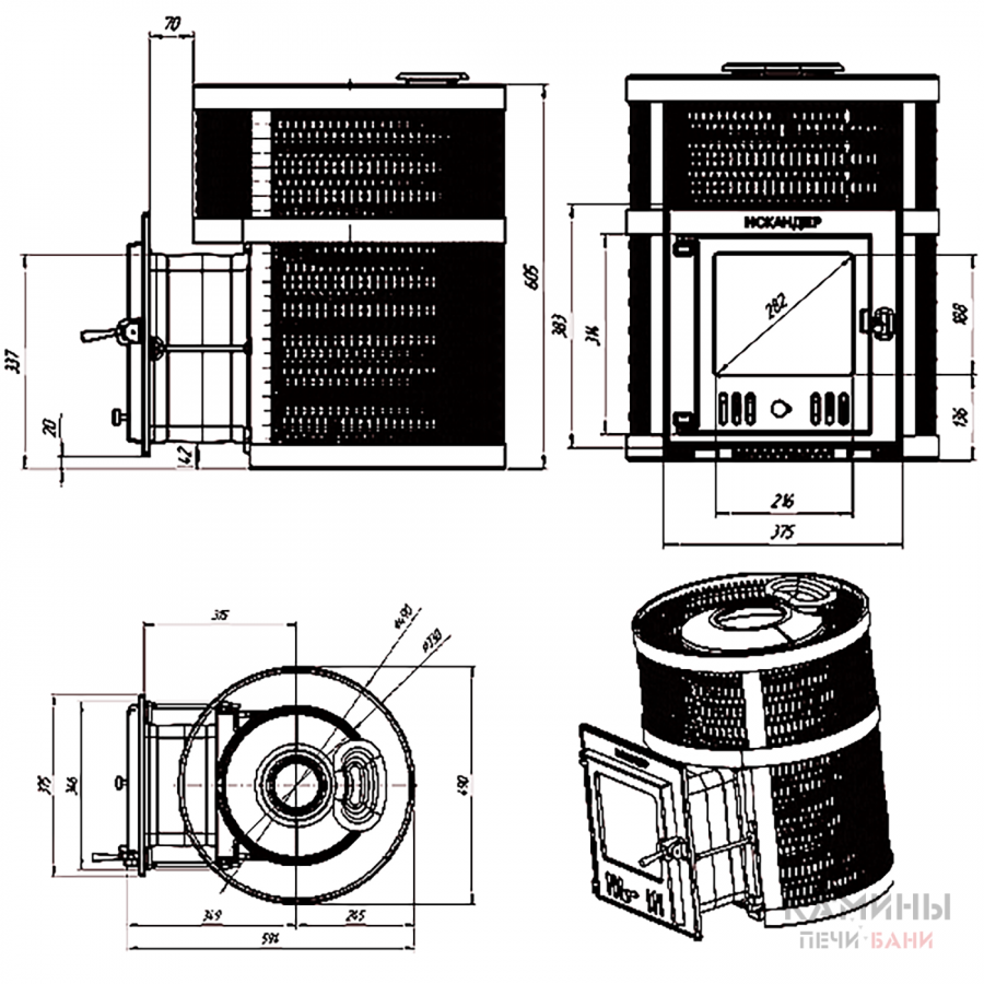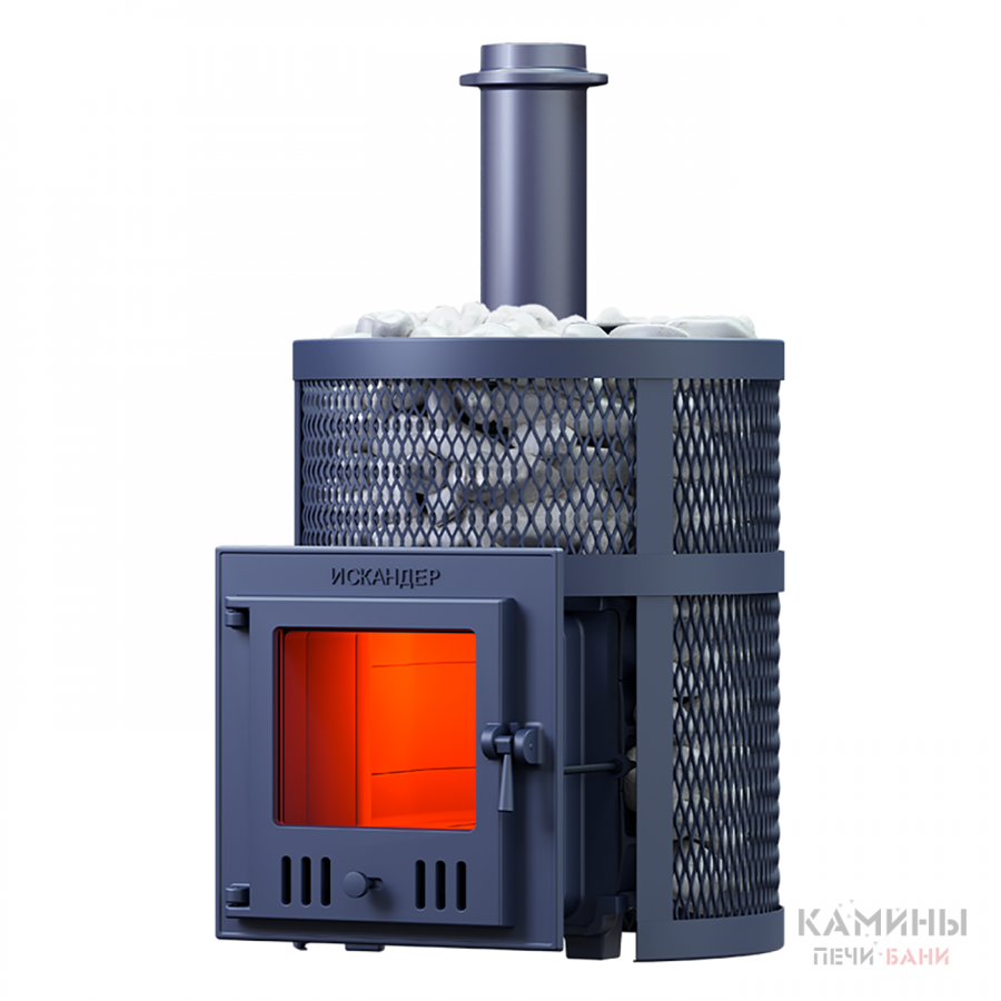 Модификация "Искандер ЗК" - это печь "Искандер" с закрытой каменкой, двумя паровыми пушками и дверцей для залповой подачи пара.