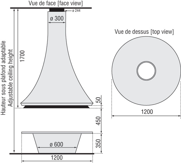 Чертеж камина Eva 992 Brute JC Bordelet открытый: