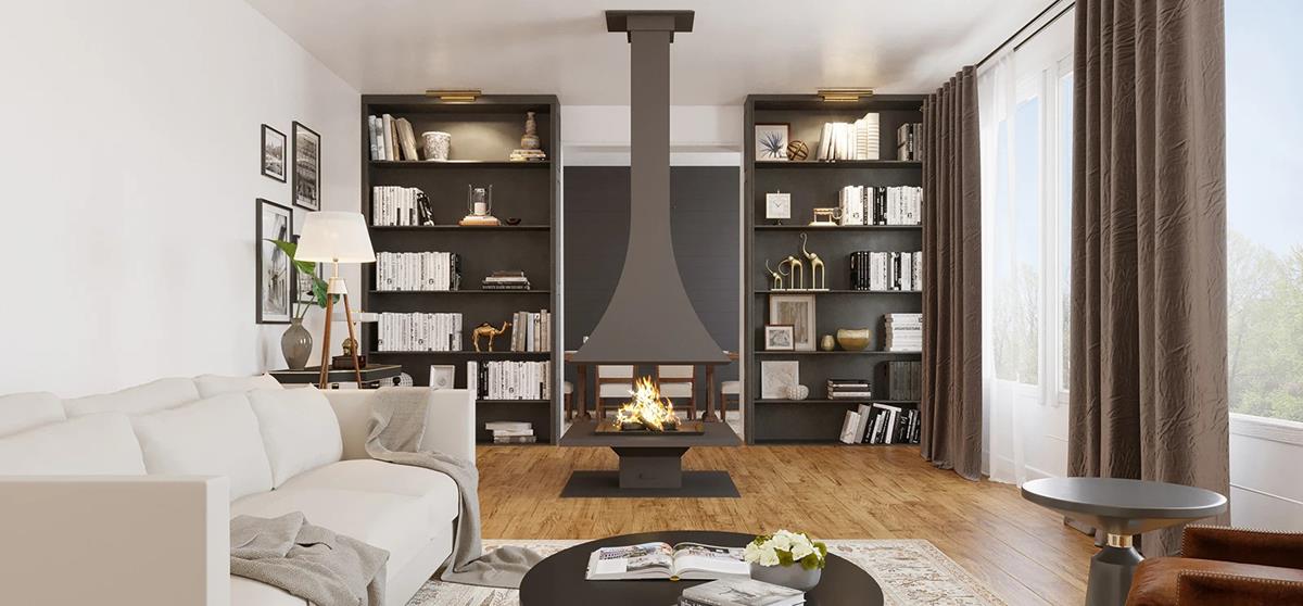 Его пропорции и обзор огня на 360 градусов делают его ключевым элементом атмосферы вашей гостиной