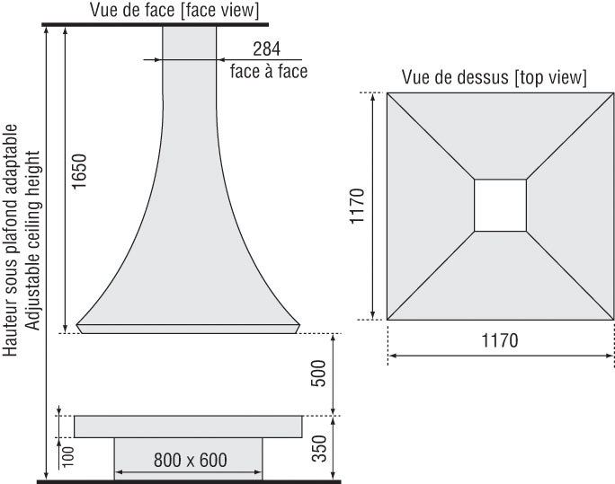 Чертеж камина Julietta 985 JC Bordelet 100*100 см: