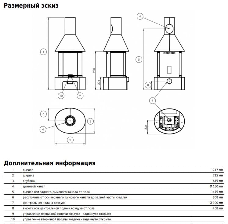 | Диаметр дымового патрубка | 150 мм |