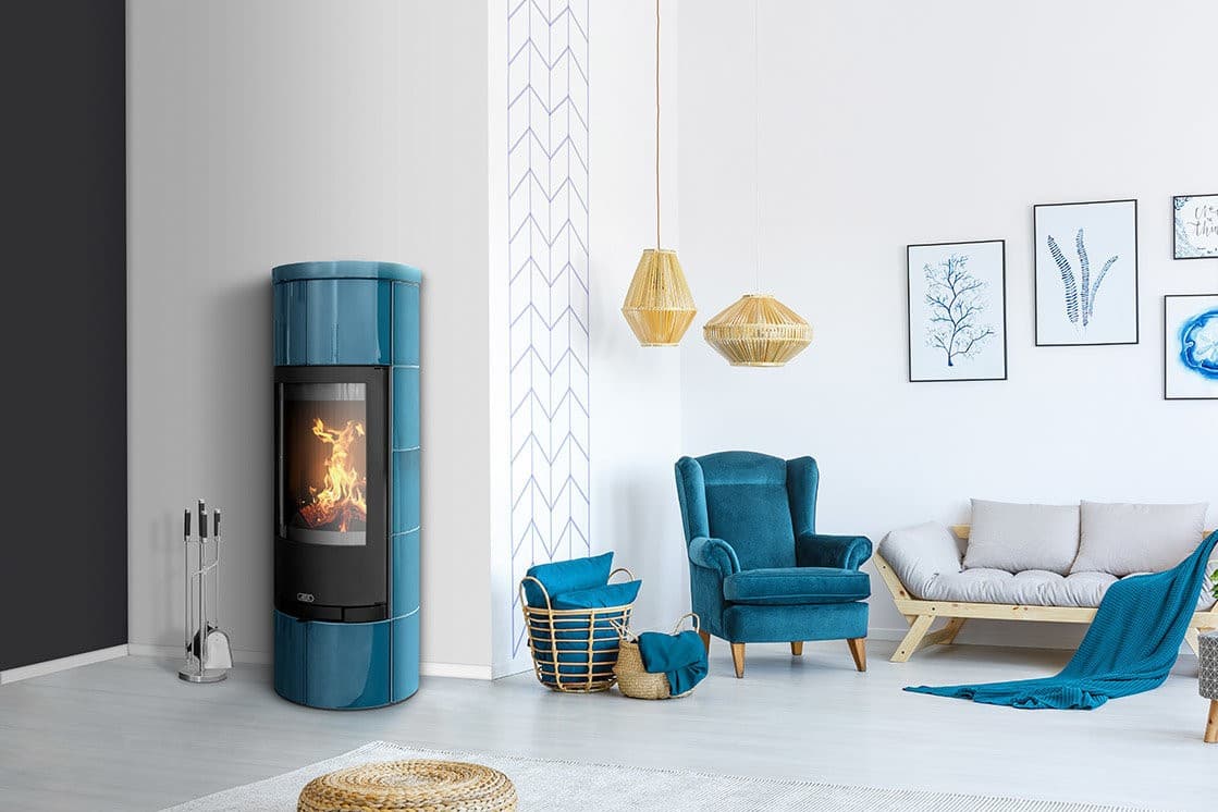 ABX KASTILIE - высокая печь-камин, изготовленная из высококачественной стали и облицована декоративной керамикой.
