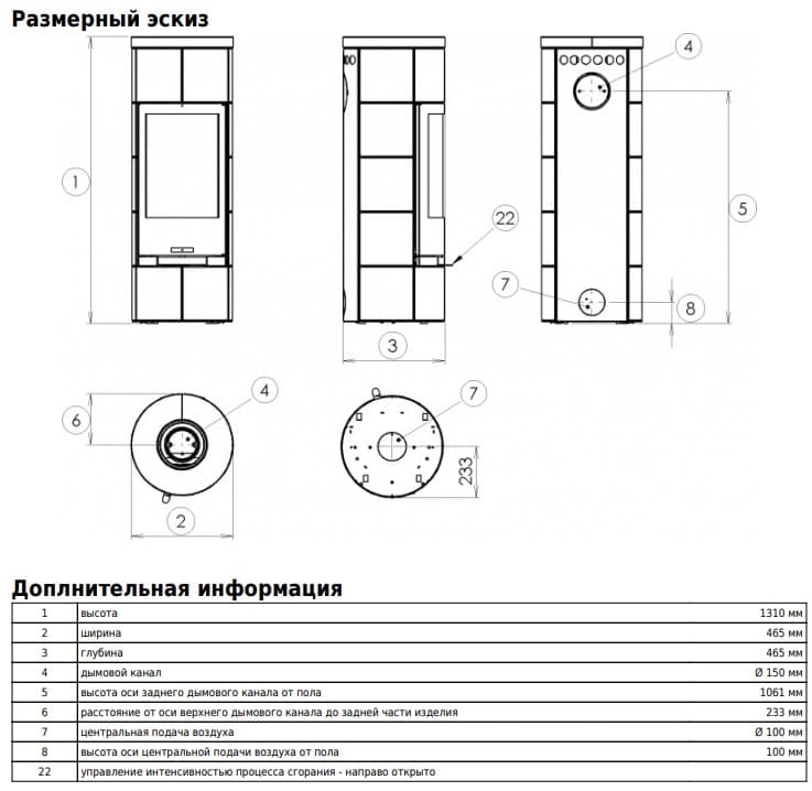 | Расположение печи-камина | пристенный, островной |
