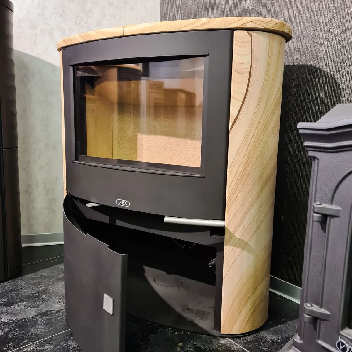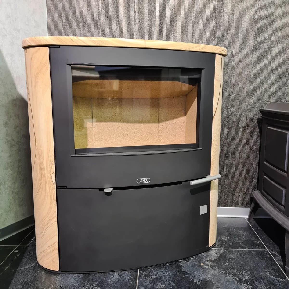 ABX Omaha песчаник - стальная печь-камин от чешского производителя. Имеет современную овальную форму с форматным стеклом, внизу есть скрытый отсек для небольшой порции дров. В качестве облицовки используется натуральный камень песчаник. У камина прямое жаростойкое стекло. Есть две регулировки интенсивности горения: