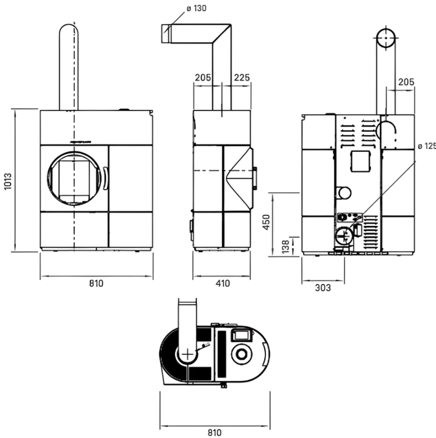 | Диаметр дымового патрубка | 130 мм |