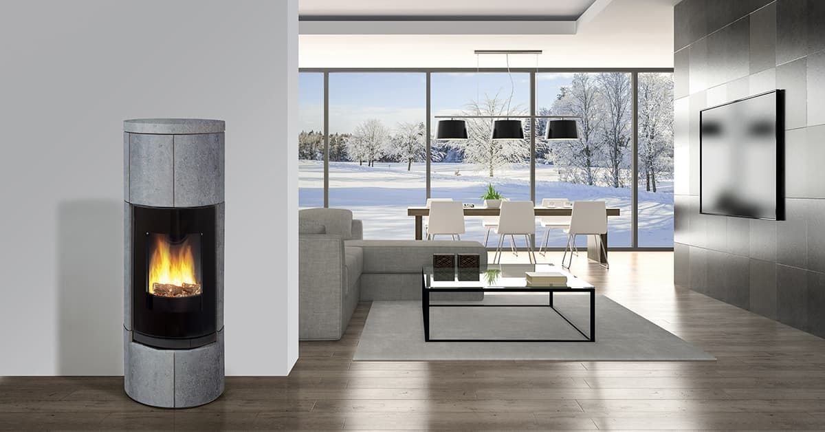 Каминная печь Cheminees Philippe Chavay - дизайнерская цилиндрическая дровяная печь. Водонепроницаемая модель.