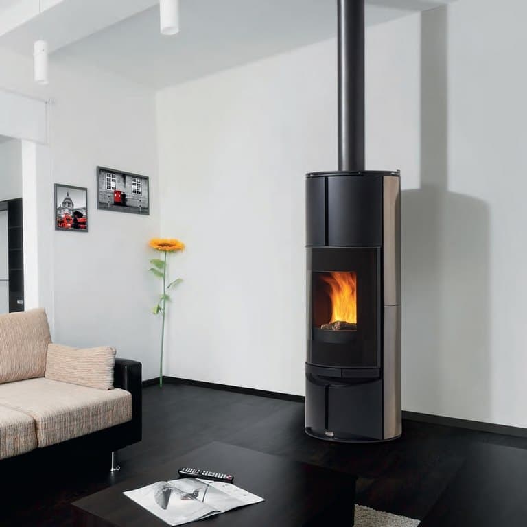 Каминная печь Cheminees Philippe Etrun керамическая- овальная цилиндрическая дровяная печь.