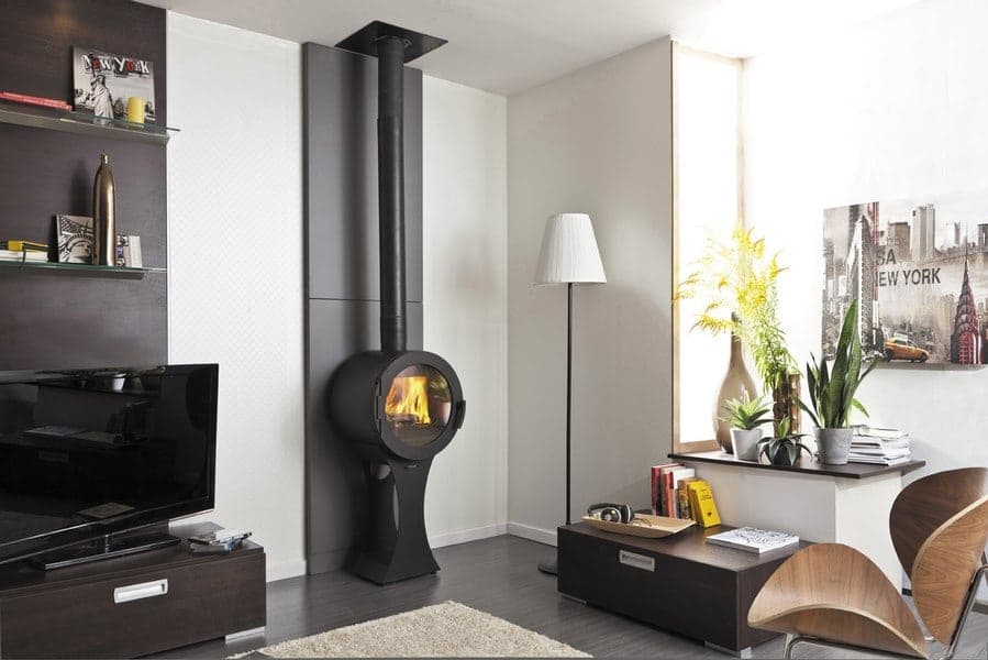 Каминная печь Cheminees Philippe Gailleres - круглая дизайнерская дровяная печь на фиксированной стальной ножке.
