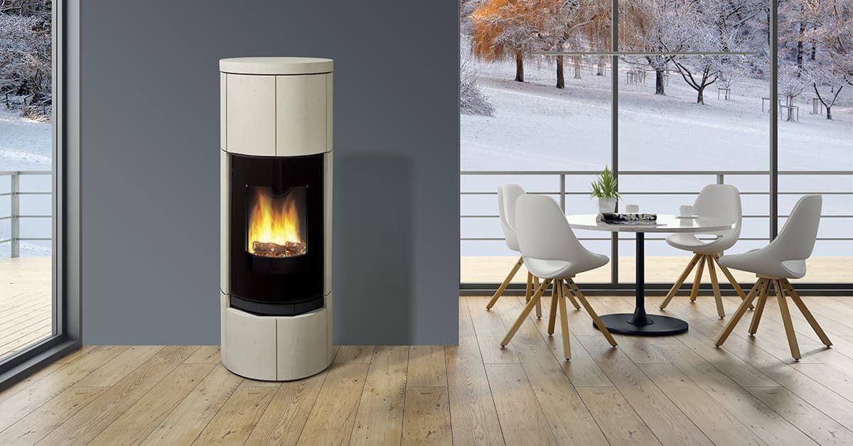 Каминная печь Cheminees Philippe Mansac - цилиндрическая дровяная печь с элегантным и современным дизайном.