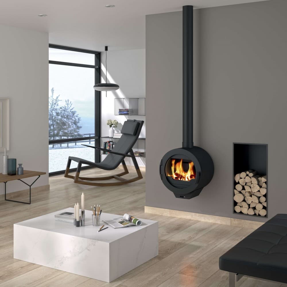 Каминная печь Cheminees Philippe Wilson - подвесная круглая дровяная печь.